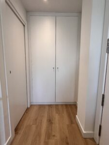 Cada rincón del piso ha sido cuidadosamente diseñado para optimizar el almacenamiento, integrando soluciones a medida que maximizan la funcionalidad sin comprometer la estética. Además, se ha incorporado un discreto pero práctico armario de lavandería, oculto a la vista, que contribuye a mantener el espacio ordenado y organizado.